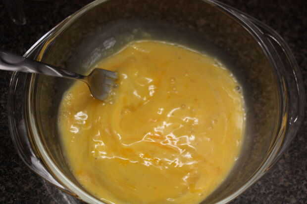 En un tazón grande combine 5 huevos, la taza del cuarto de leche, sal y pimienta. Batir hasta que quede suave.