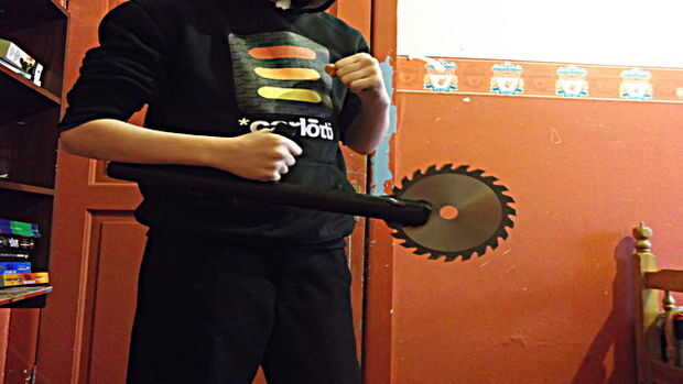 Todo lo que necesitas para esto es: un murciélago o una tonfa (utilicé mi casera tonfa), una hoja de sierra circular, una sierra, un tornillo, un martillo, algunas cintas y quizá un destornillador.