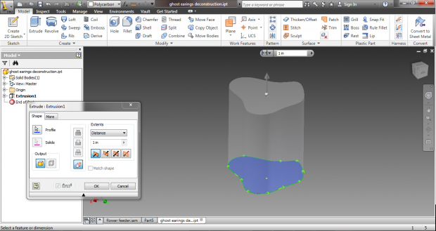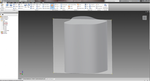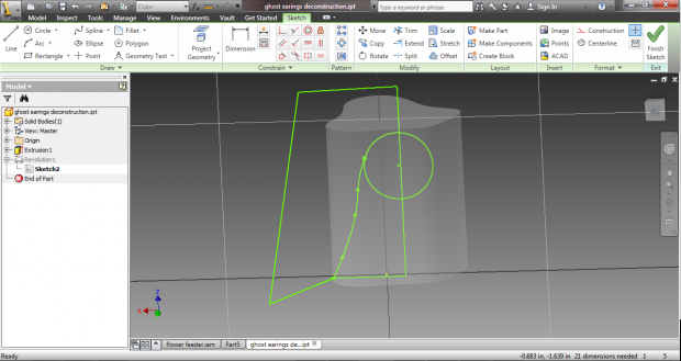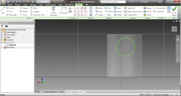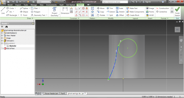 A continuación, crear una superficie de trabajo que está alineada con la extrusión vertical y el x, plano y. Dibujar un círculo ~3/4 «de diámetro situado en el borde superior de la extrusión. Asegúrese de que el círculo es un poco off centro--usted verá por qué en los siguientes pasos.