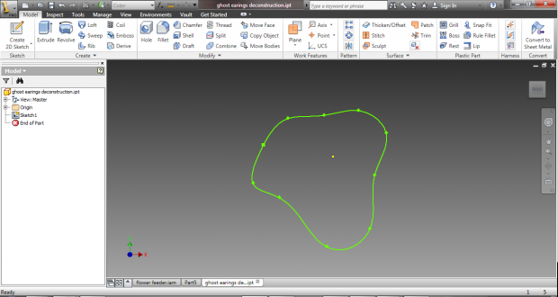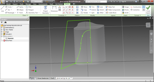 A continuación dibuje una línea conectando el punto inferior de la línea que marcó al parte inferior el punto de la spline que dibujó. Esta última línea creará una forma cerrada que el perfil de un procedimiento de corte giratorio para crear la forma, los fantasmas.