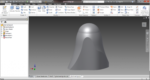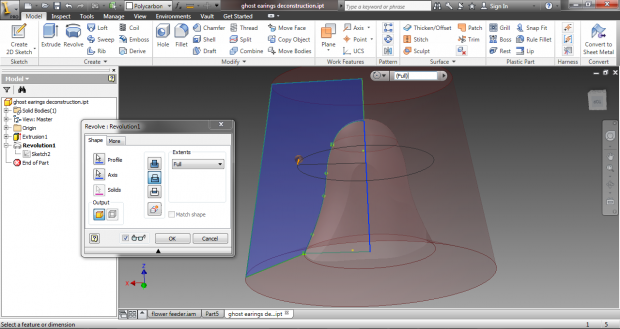 Un corte rotacional de este perfil debe realizarse ahora con la línea vertical como el eje de rotación y la forma "exterior" como la cara. Usted quiere tener un "desequilibrado" giran tales que hay una región larga plana en un lado de la protuberancia. La ilustración muestra esto más claramente. Si esta zona es demasiado pequeña ajustar el dibujo que forman la plantilla para la operación de girar hacia un lado para aumentar esta área.