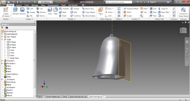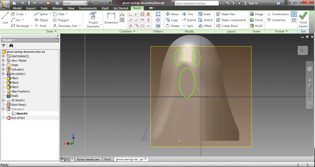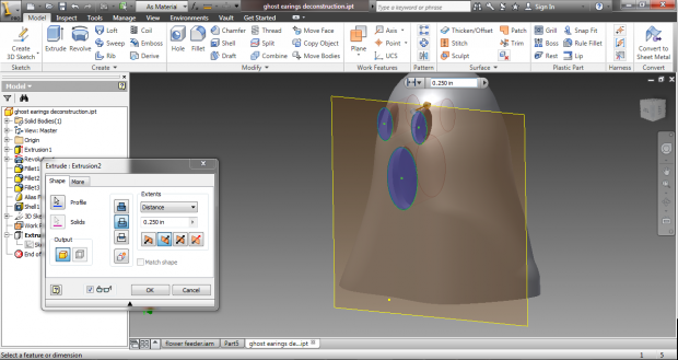 Ahora realizar una extrusión corte que va totalmente a un lado del cuerpo fantasma pero no a través de la parte posterior de la forma.