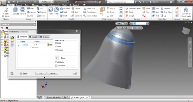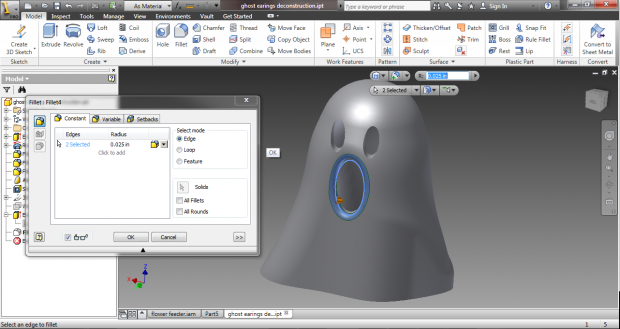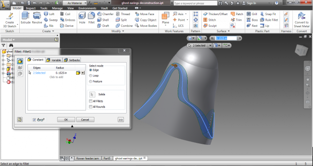 Seleccione cada borde uno en un momento y ajustar el diámetro del filete hasta que haya una transición suave. Asegúrese de que haces esto para todas las partes del modelo que tienen una transición abrubt o borde duro. La siguientes imágenes muestran que mi modelo fue alisada hacia fuera.