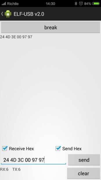 4.1 enviar datos a ELF, primero enviar '24 4D 00 CD 3C CD' a calibración, segundo 24 4 D 3 00 97 97' para armar, como se muestra en la imagen x.if han los datos de vuelta, después abra VRdrone de ELF, comprobarlo.