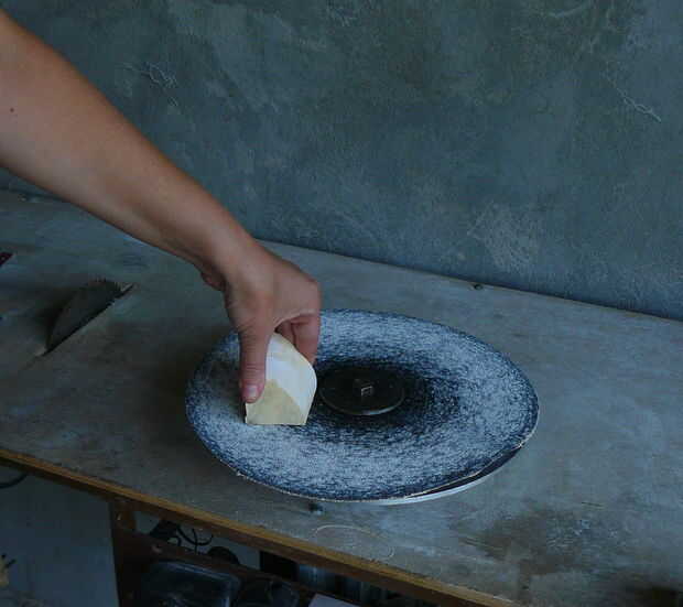 Dibujar el esbozo de la pieza y usar la lijadora de disco para completar el material que la forma básica que usted necesita.