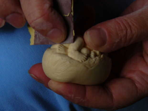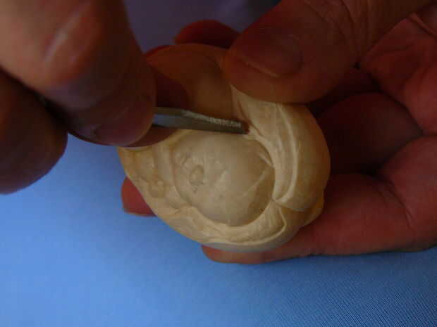 Usando una broca bastante grande comenzar a desbastar las formas básicas. Continúan progresivamente más pequeños trozos para los detalles más finos. Por último destacar los detalles principales con herramientas de mano si es necesario.