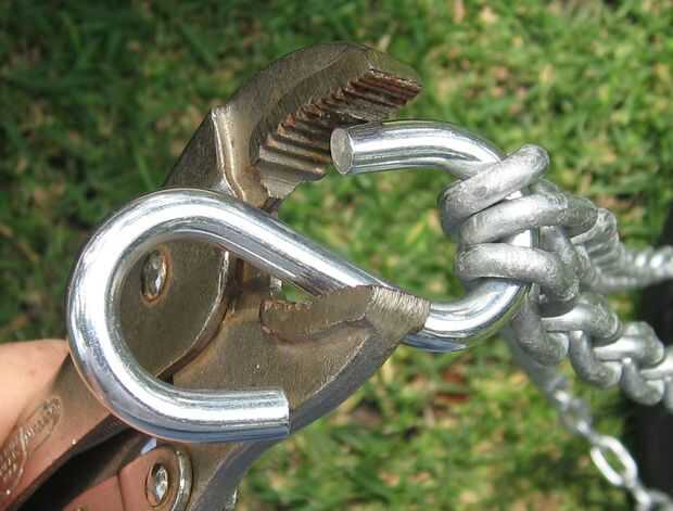 a continuación, tome el S-gancho 4 y coloque las tapas de todas las cadenas de 3 a él, bloqueo apretado con los alicates Vice de marca simplemente como los tres primeros. Aquí están las fotos de: