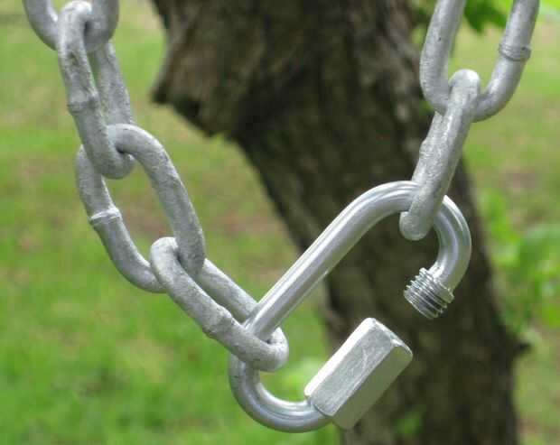 Aquí es una foto del conector de enlace solía cerrar la cadena colgando.