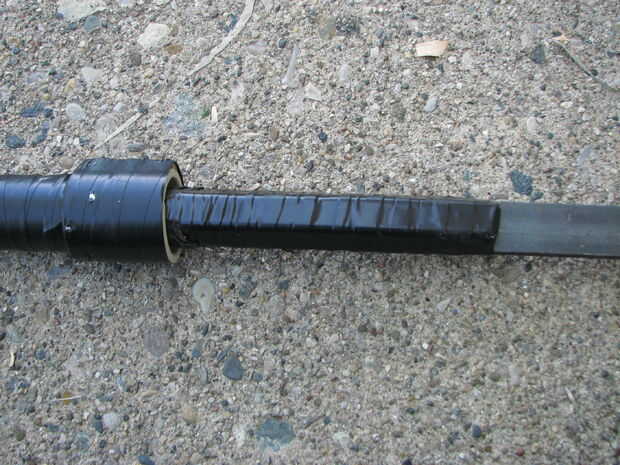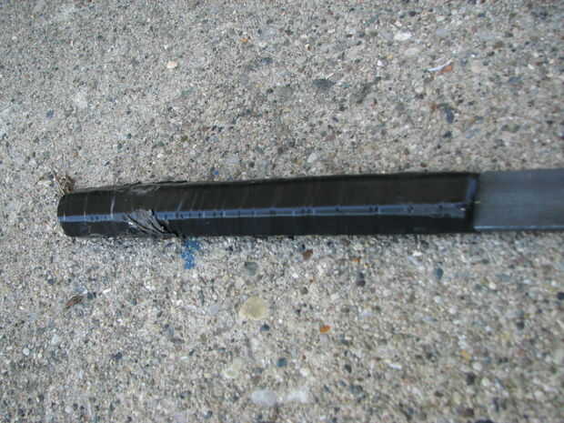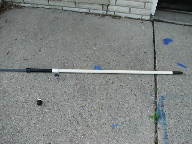 A continuación cortar un 3' - 4' del tubo de PVC hacia fuera dependiendo de la altura se encuentre. A continuación tomar la varilla y cortarlo a acerca de 4"-6" dependiendo de cuánto tiempo usted lo quiere. Siguiente material en un extremo de la pieza más larga del PVC de la pipa le puede tener o hacer alguna talla y presentación para conseguir que se ajuste. Cuando termines con eso hacer la barra a un punto (así que usted puede utilizarlo como una lanza cuando su espada en la vaina).