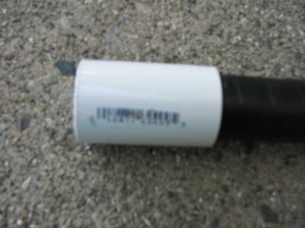 Luego tomar el otro acoplador y ponerlo en el otro extremo de la manija. Y cortar un pequeño trozo de tubo de PVC de 1' y ram lo más lejos puede en su tapa. Debe tener aproximadamente 1/2 izquierda sobresale el extremo de la tapa. Usted puede poner en su acoplamiento y luego ocultar una carta o algo en el extremo de la manija.
