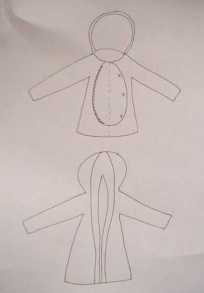 Hacer la parte de atrás cortando a la raya de la mofeta de tela blanca y coser a la camiseta, a partir de la campana y terminando en la base de la espalda.