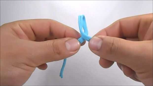 -Poner el pedazo de hilo de su mano derecha sobre el pedazo de hilo de la mano izquierda, haciendo una especie de lazo y sujetar ambas piezas de hilo con la mano izquierda (usando el dedo índice y el pulgar)