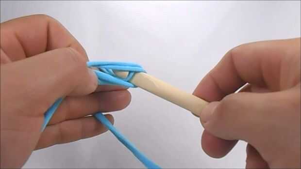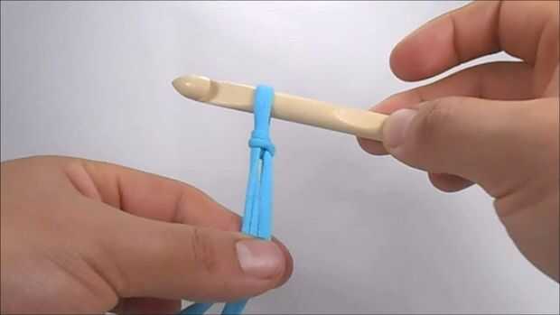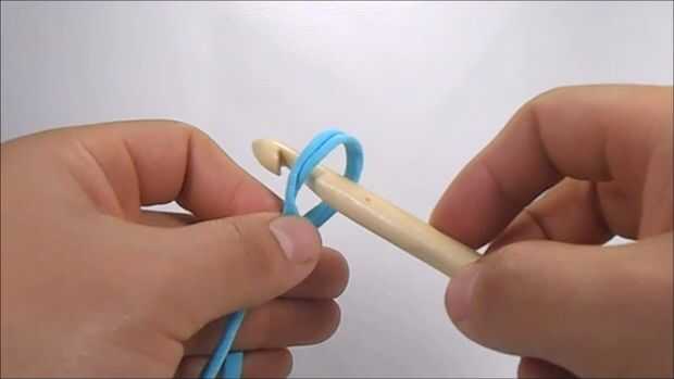 -Ahora, con nuestra mano derecha va a tomar el gancho y pasarla por el bucle que estamos celebrando con nuestra mano izquierda, agarra un pedazo de hilo que está tendido sobre el medio y el dedo anular y pasar a través del anillo.