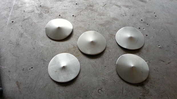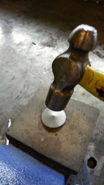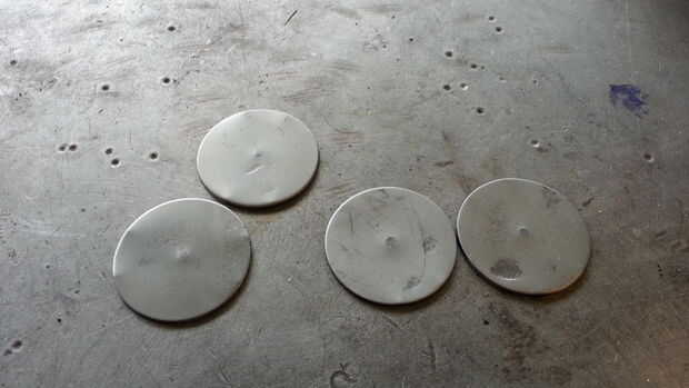El golpe pone una pequeña hendidura en el centro de cada uno de ellos usé sólo un martillo contra un yunque para aplanar hacia fuera.