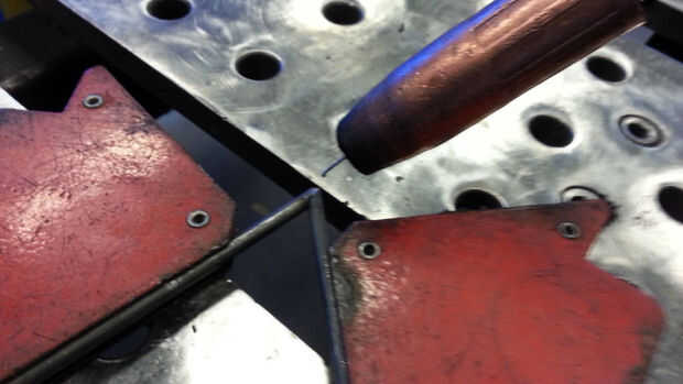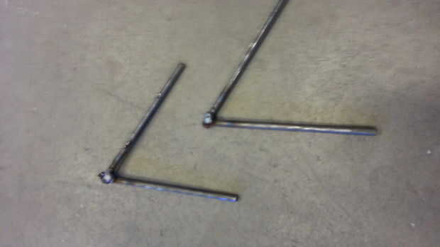 Tomar 2 de sus cañas y soldarlas juntas en "V". Repita para los otros 2.