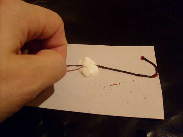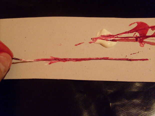 2. Agregue el látex tirando como se retuerza a través. Usar tinte en paleta si quieres más oscuro
