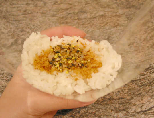 sobreOnigiri son bolas del arroz japonés. Son divertidas para hacer y son un elemento básico de Japon almuerzo (bento). Usted puede poner casi cualquier cosa en un onigiri; "trate de sustituir el salmón a la parrilla, ciruelas en escabeche, carne, ce