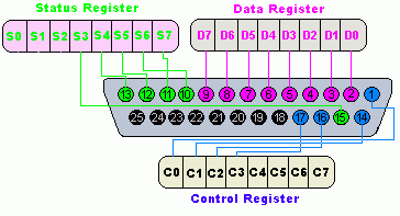 Poner los LEDs según el esquema en los agujeros correctos. Luego conecte el cable al puerto paralelo.