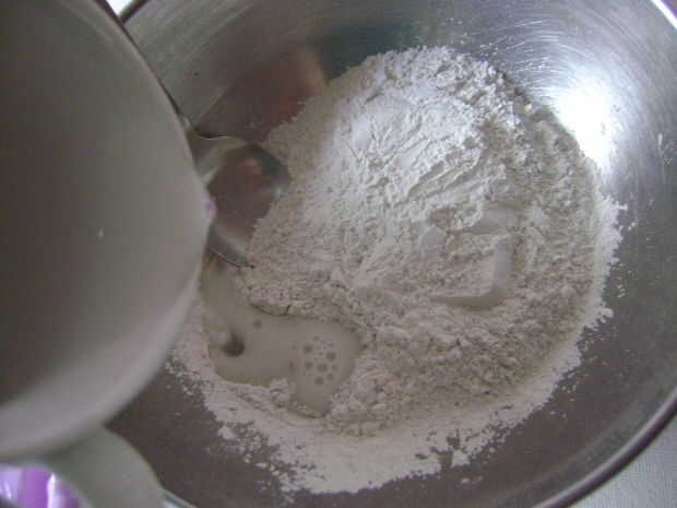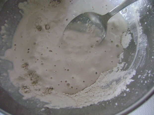 Mezclar con cuchara hasta que no hay grumos en la mezcla.