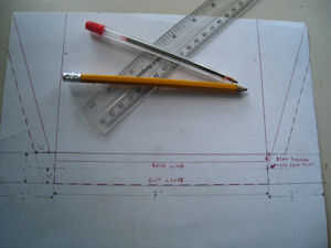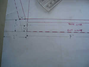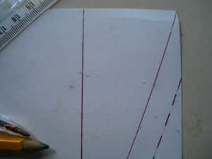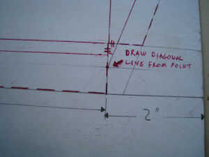 Usted entonces dibuja una línea paralela y 1/2" entre las líneas de fondo. Donde la línea de 1/2" cruza la línea lateral 2", trace una línea diagonal desde el punto y en el borde superior del contorno.