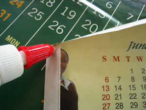 El pegamento se aplica a la superficie de las fichas restantes y se coloca en la ubicación seleccionada en el calendario.