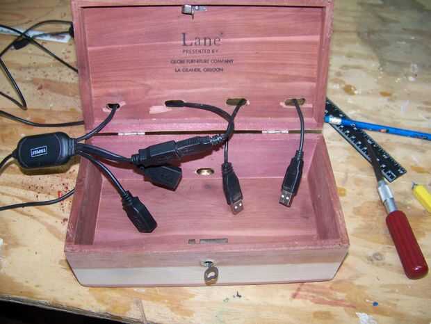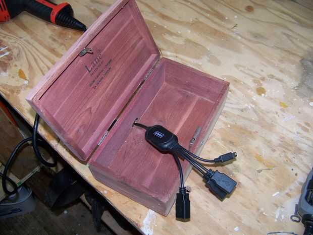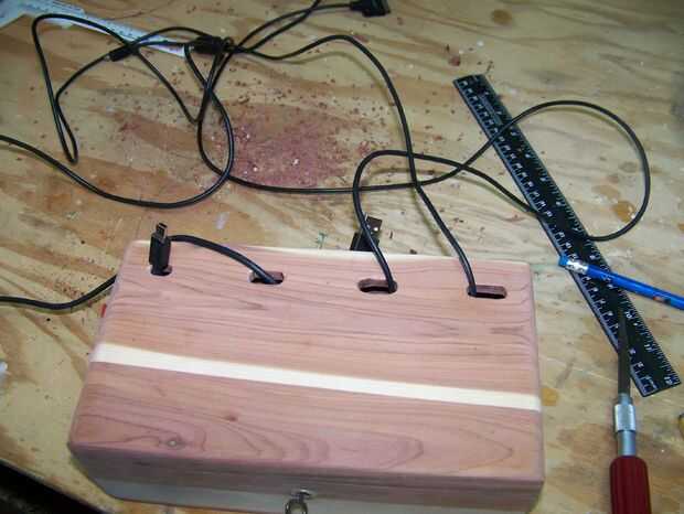 A continuación, asegúrese de que todos los cables y enchufes de caben a través de los orificios según sea necesario. Si no, simplemente trabajar los orificios con el dremel hasta que encajen.