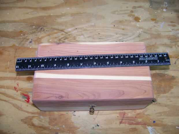 Con una regla, medir cuatro agujeros uniformemente espaciados a lo largo de la parte superior de la caja y un centro muerto en la espalda, cerca de la parte inferior.