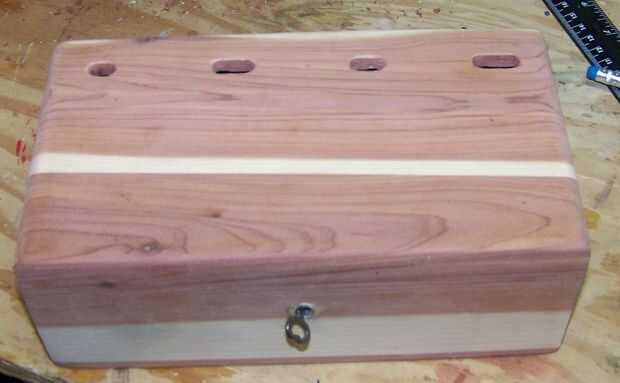 Hice mi mejor esfuerzo para hacer los agujeros sólo lo suficientemente grandes que podría apretar el tapón en cuestión a través de con un poco de grasa del codo, pero nada accidentalmente sería caer en la caja.