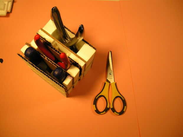 El producto final... Nota cómo huella del titular equivale al espacio ocupa una herramienta. De esta manera se puede saber de un vistazo si todas las herramientas están en su lugar, y sean fáciles de tomar para hacer su trabajo. Usé una banda elástica para sostener los módulos juntos, pero puede ser incluidos en una "caja" hecha de cartón, masonite, lámina perimétrica o así sucesivamente. Lo dejé en este punto, podríamos querer añadir a él en el futuro, pero no quiero hacerlo demasiado grande.