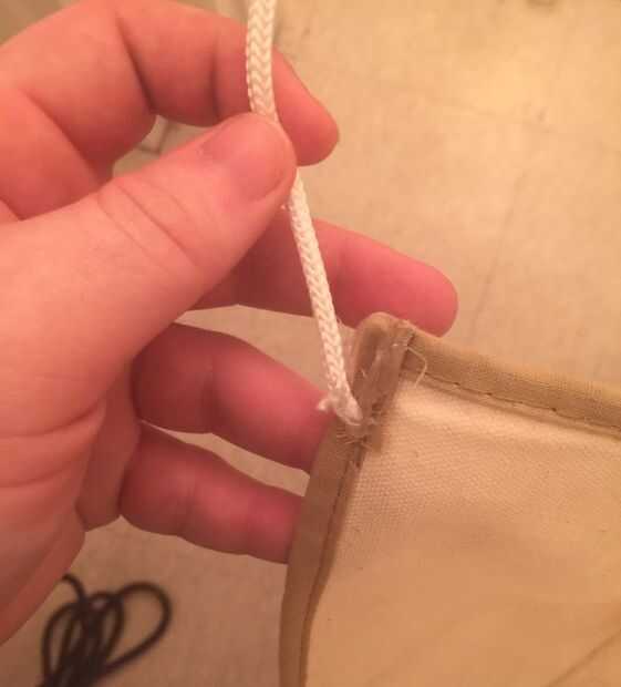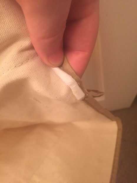 Ahora que sabemos cómo queremos que nuestro bolsillo a tomar forma alrededor de la tira de la energía, que necesitamos unir la parte de abajo estamos doblando hasta el cuerpo principal para completar el bolsillo. Para ello vamos a necesitar seis longitudes de 3 a 4 pulgadas de cadena. Necesita 6 por cada bolsillo que vas a hacer. Para este organizador del zapato particular hice dos bolsillos. Si las longitudes de cadena corta no tiene una punta de plástico en los extremos, tomar poco de cinta y enróllelo alrededor de las puntas para que la cadena no debilite y finalmente se deshizo. Coloque la cadena en las esquinas y el borde medio de la porción que son plegables hacia arriba con su cola. También fijar la cuerda donde se marcó anteriormente, donde las esquinas y el borde medio se encuentra con el cuerpo principal del organizador otra vez. Simplemente unir las cuerdas algo firmemente, para que la parte doblada hasta casi toca el cuerpo principal.