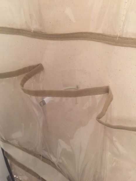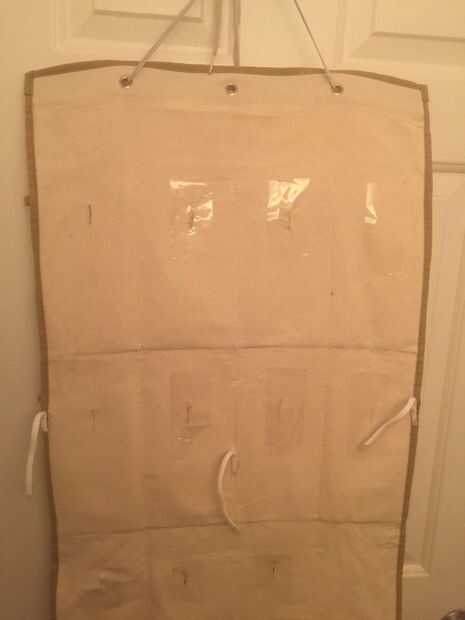 La última cosa que necesitamos hacer para completar nuestro organizador de carga es hacer agujeros en cada uno de los bolsillos que queremos tener cuerdas funcionaron a través de la carga. En primer lugar, decidir donde van a tener los orificios situados. Te recomiendo que sean en algún lugar cerca de la parte superior de la bolsa correspondiente ya que es más fácil de conectar al dispositivo y también el cable permanece en el bolsillo en vez de caer hacia la parte posterior. Una vez hayas decidido que serán los agujeros, poner unas tiras de cinta adhesiva alrededor del área en la parte delantera y trasera. Esto ayudará a la tela no se deshilache y deteriorando con el tiempo. Pellizcar el tejido y la cinta para hacer su corte, pero asegúrese de que la bolsa plástica en la parte delantera es lejos de la tela para que no corte a través de ella también. Hacen sobre una media pulgada cortado en su sección pellizcada con cinta para crear el agujero. Repita este mismo procedimiento para todos los bolsillos que desea poner un cargador en.