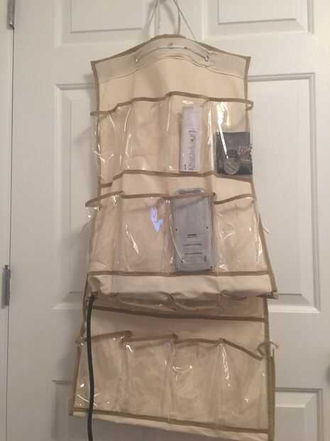 El organizador de carga ya está completa! Cuelgue para arriba donde es el más conveniente para usted, inserte sus bandas de energía en sus bolsillos y enchufe. Conecte cualquier adaptadores necesita de regletas, instale sus cables de carga a través de los agujeros y ahora puede cargar sus dispositivos en una forma bien organizada. Para este organizador de particular, lo uso principalmente para poner mis artículos todos los días llevan todos juntos en un solo lugar. Es decir, las llaves de mi cartera y mi celular carga. Los bolsillos en este organizador particular son un poco a pequeño dispositivos como tabletas y dispositivos más grandes tales como. Sin embargo, alguna ligera modificación para los bolsillos puede permitir que estos dispositivos de ajuste. Puede que desee explorar algunos organizadores de zapatos diferentes y el tamaño de los bolsillos, en comparación con mi organizador de zapato especial, si usted quiere poner dispositivos más grandes en ellos.