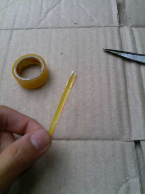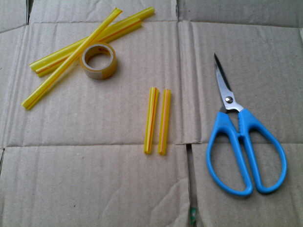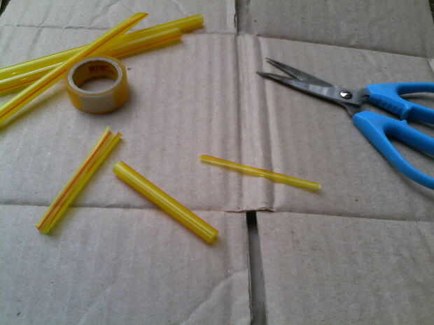 Corte las pajillas en unos 2-3 pulgadas, luego con la cinta, sobre 20 veces, depende de cómo piense cinta es. Más tarde puede Agregar o quitar abrigos para equilibrar el plano hacia fuera.
