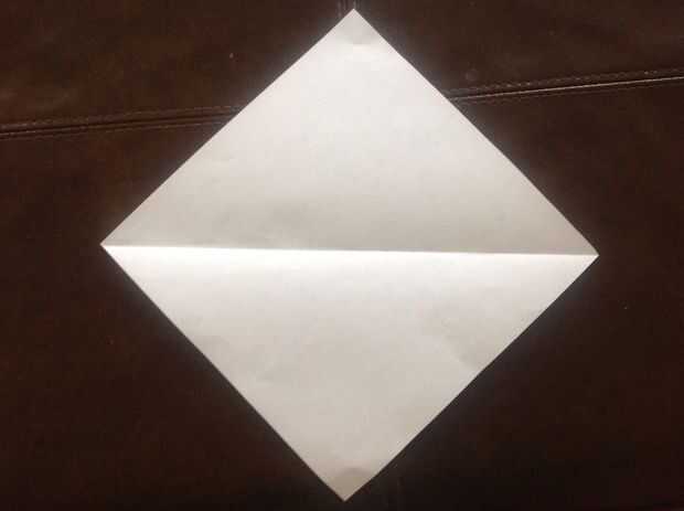 Doblar un trozo cuadrado de papel por la mitad, esquina a esquina. Se despliegan. Do en ambos lados.