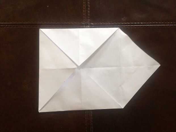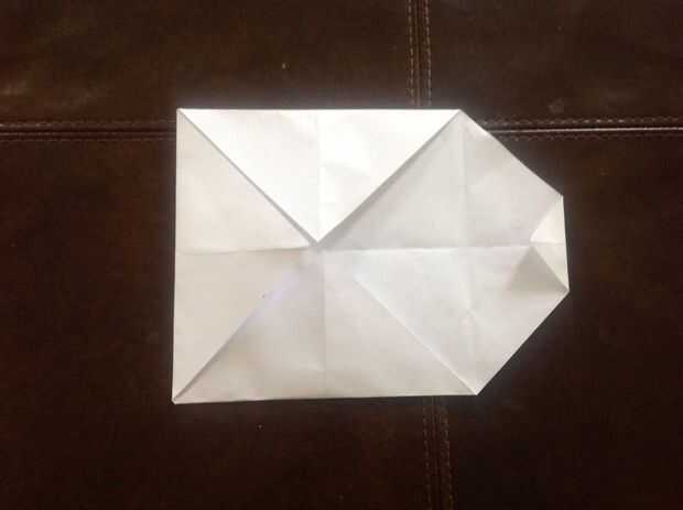 1 despliegue la aleta de esquina. Luego, doble el punto hacia abajo alrededor de una pulgada. A continuación, doblar en el lugar.