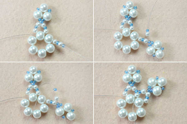 4, pase el cable hacia la derecha para la siguiente perla perla 8mm, luego repetir el proceso la 1ª y la 2ª en este paso;