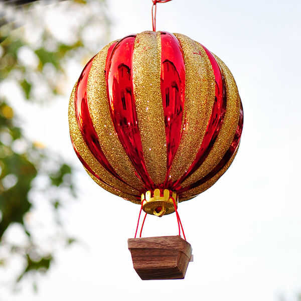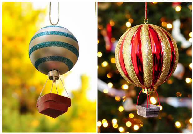 Hice mi ornamento de globo de aire caliente, usando un plástico Navidad que compré en la tienda de 99 centavos solamente. Hubo algunos lindos rosa adornos hay que serían perfectos para un móvil de chicas.