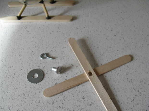 Empuje la cabeza del remache a través del orificio, y la lavadora irá por debajo de las palas del rotor. Ninguna razón, sólo pensé que parecía agradable.