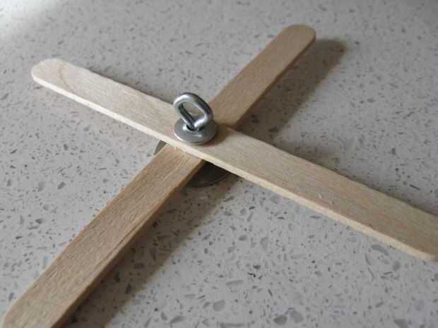 El gancho del ojo estuviera pegado al orificio en la parte superior del remache - el ornamento se cuelgue de él.