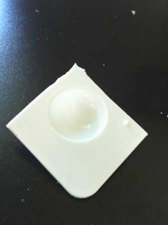 Coloque un pedazo de cara de papel de lija grano 220 para arriba en su mesa de trabajo y frotar el borde de la cúpula poco a afeitarse el material. Gire la cúpula a menudo para asegurarse que una cantidad uniforme de material es removida. Prueba de ajuste alzando a su ornamento y cuando usted está satisfecho con el tamaño, apartar para utilizar como referencia para el segundo ojo. Repita el proceso de lijado hasta que tenga dos idénticamente tamaño ojo cúpulas.