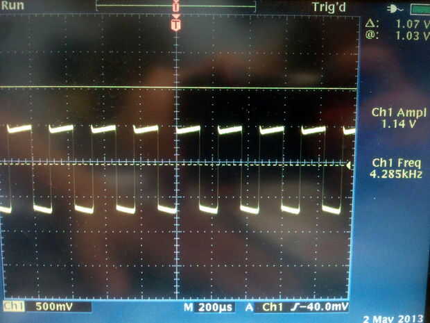 La frecuencia de la oscilación depende por lo tanto el tamaño del condensador y la tensión de entrada.