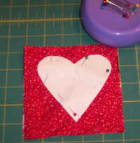 Prender y cortar cuatro corazones de los cuadrados de tela.