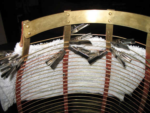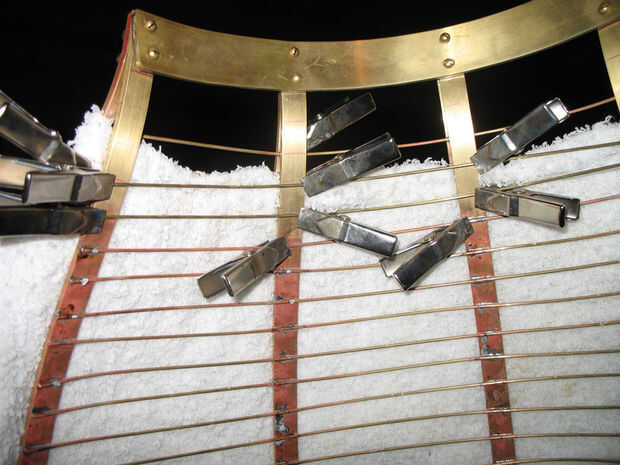 Muchos una abrazadera de resorte pequeño dio su vida por esta parte del proceso - las abrazaderas tipo c eran demasiado grandes para usar en áreas estrechas. Las abrazaderas de resorte sólo no podían tolerar el calor, pero eran afortunadamente lo bastante fuertes como para sostener temporalmente por las secciones que fueron cogiendo fuego indirecto.