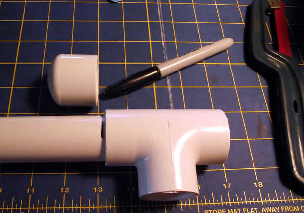 Introduzca el tubo en la sección en T y marcar donde termina, luego hacer lo mismo con la tapa.
