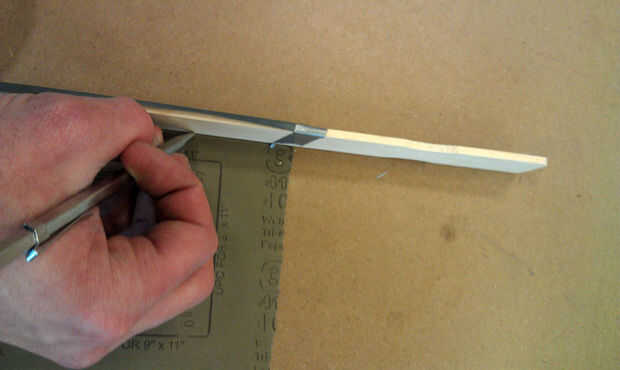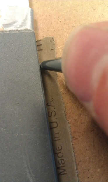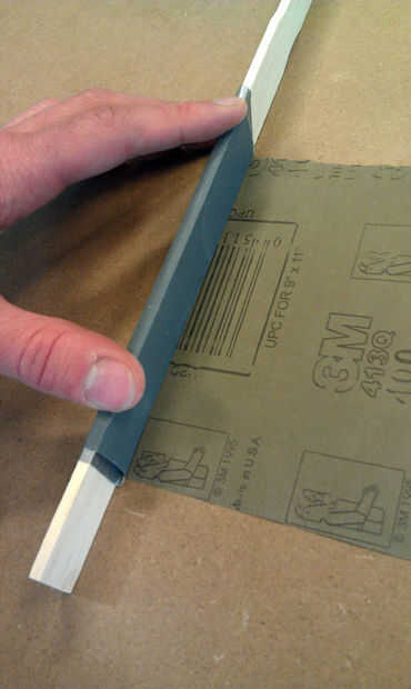 1) colocar papel de lija grano lateral; Ponga su URL de palillo en el borde, con sólo un poco colgando.