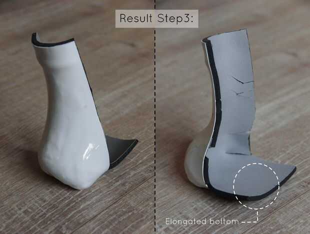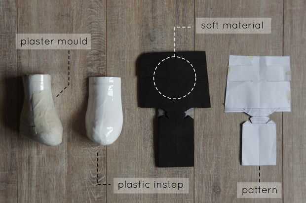 1. Definir el patrón correcto para cubrir la parte interior del empeine del 'Paso 2'. Hacer esto en una forma de ensayo y error, utilizando papel, lápiz y tijeras.
