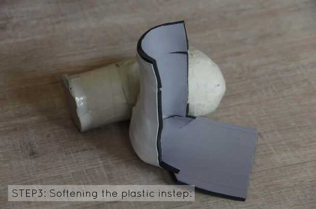 3. Cortar este patrón de material suave (por ejemplo, un mouse pad) y probarla en el empeine plástico. Ajustar el cut-out cuando sea necesario.
