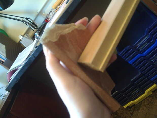 Así, cortar la madera por la mitad para darme m dos 1.3 piezas y a lijar los extremos apagado.
