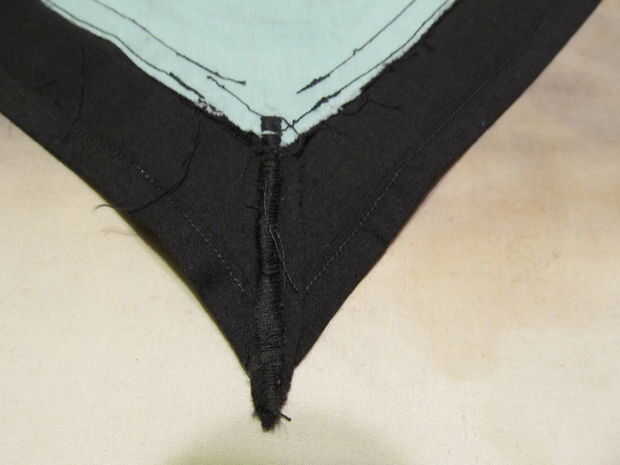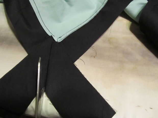 Vuelta de pañuelo al cuello y corte la tela de acento extra de como cerrar como se puede llegar a los puntos de sutura sin cortar sus puntadas.