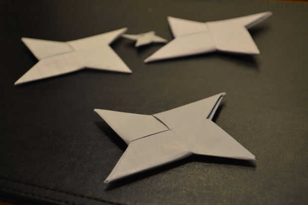 Se muestra cómo hacer un papel lanzando estrellas/shuriken. Es un modelo fácil de hacer pero cuando plegable tratan de hacer los bordes tan recto como sea posible para obtener mejores resultados. Puede ser hecho de cualquier tipo de papel de impresora normal y papel revista bien. Dos colores diferentes de papel pueden darle más interesante aspecto. El ninja origami estrella/shuriken es divertido y fácil de plegar, su peso, forma y forma es uniformemente equilibrado alrededor que hace que lo excelente para lanzar. Tenga cuidado al tirar porque las esquinas son puntiagudas y a veces la trayectoria de vuelo es impredecible.